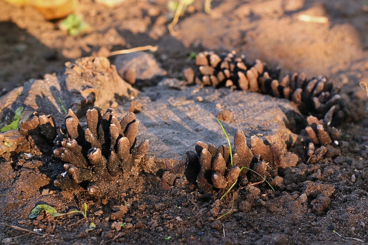 You are lying on what seems to be a low tree stump - one nearly covered by the ground. A ring of dark, finger-like mushrooms encircles it. The wind is a bit chilly, but the tree stump seems to give off warmth. The ground around the stump is covered by melting snow. The low morning sun is shining brightly in the clear blue sky.
